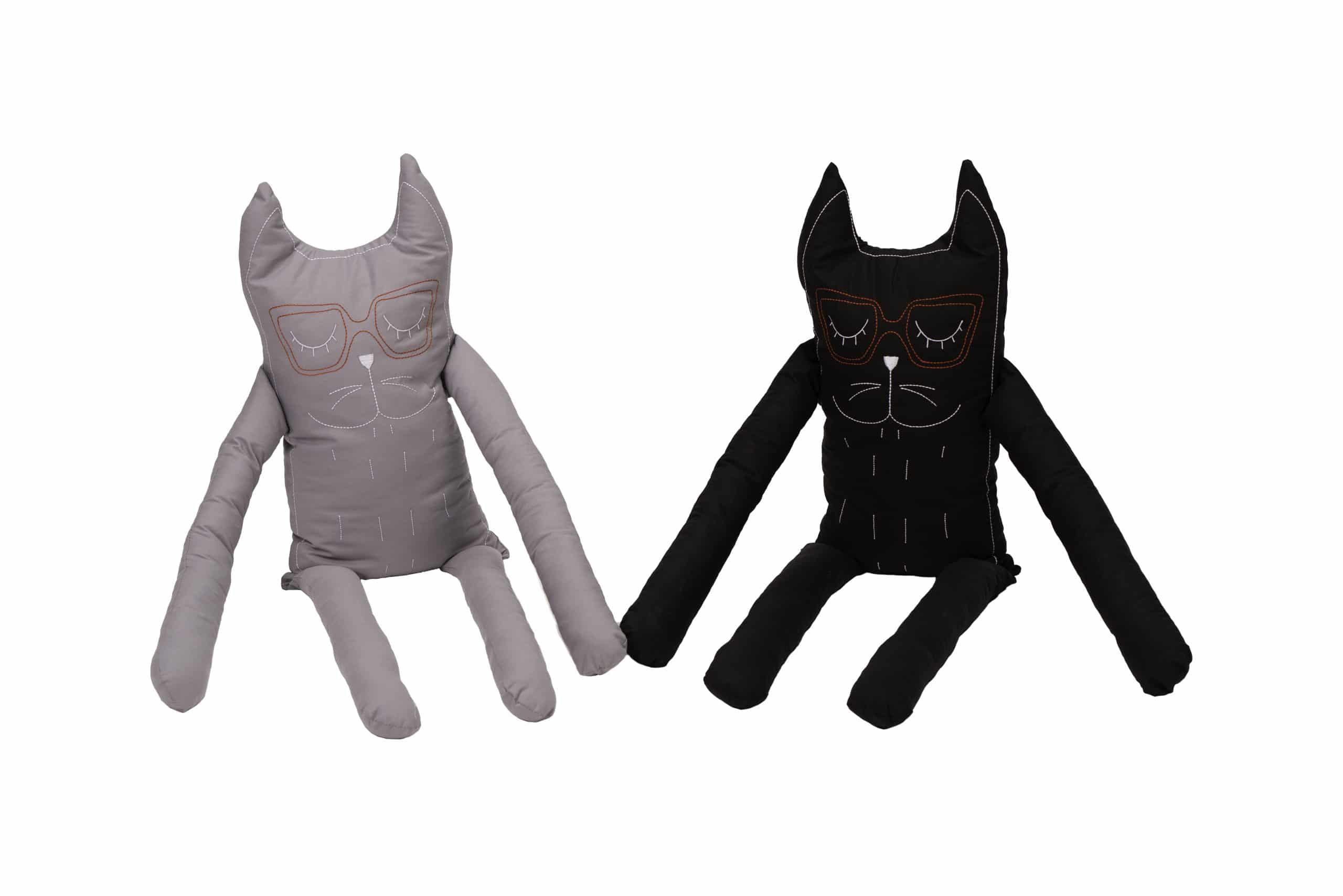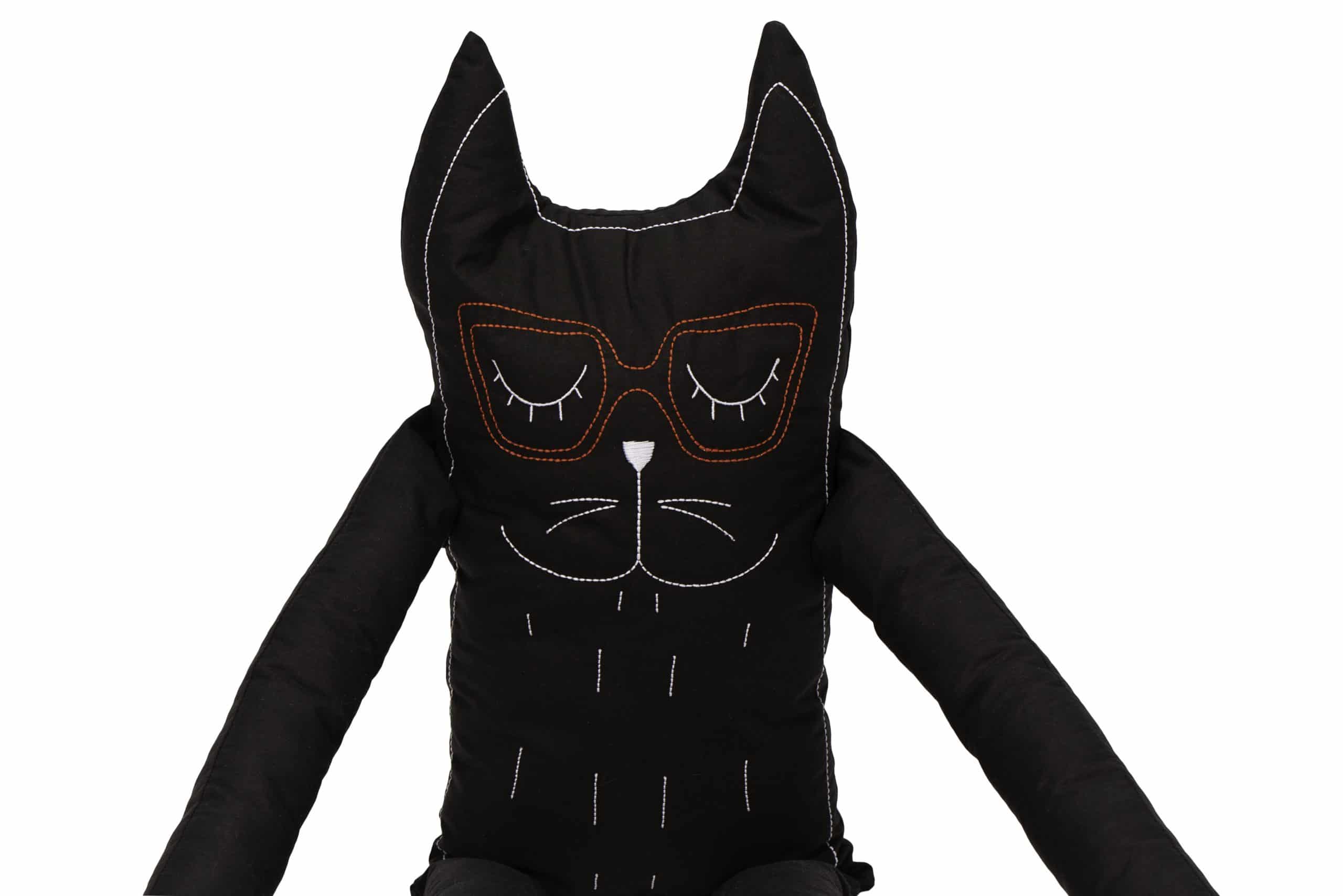 Perna in forma de pisica SomnArt, bumbac, umplutura sare, Negru