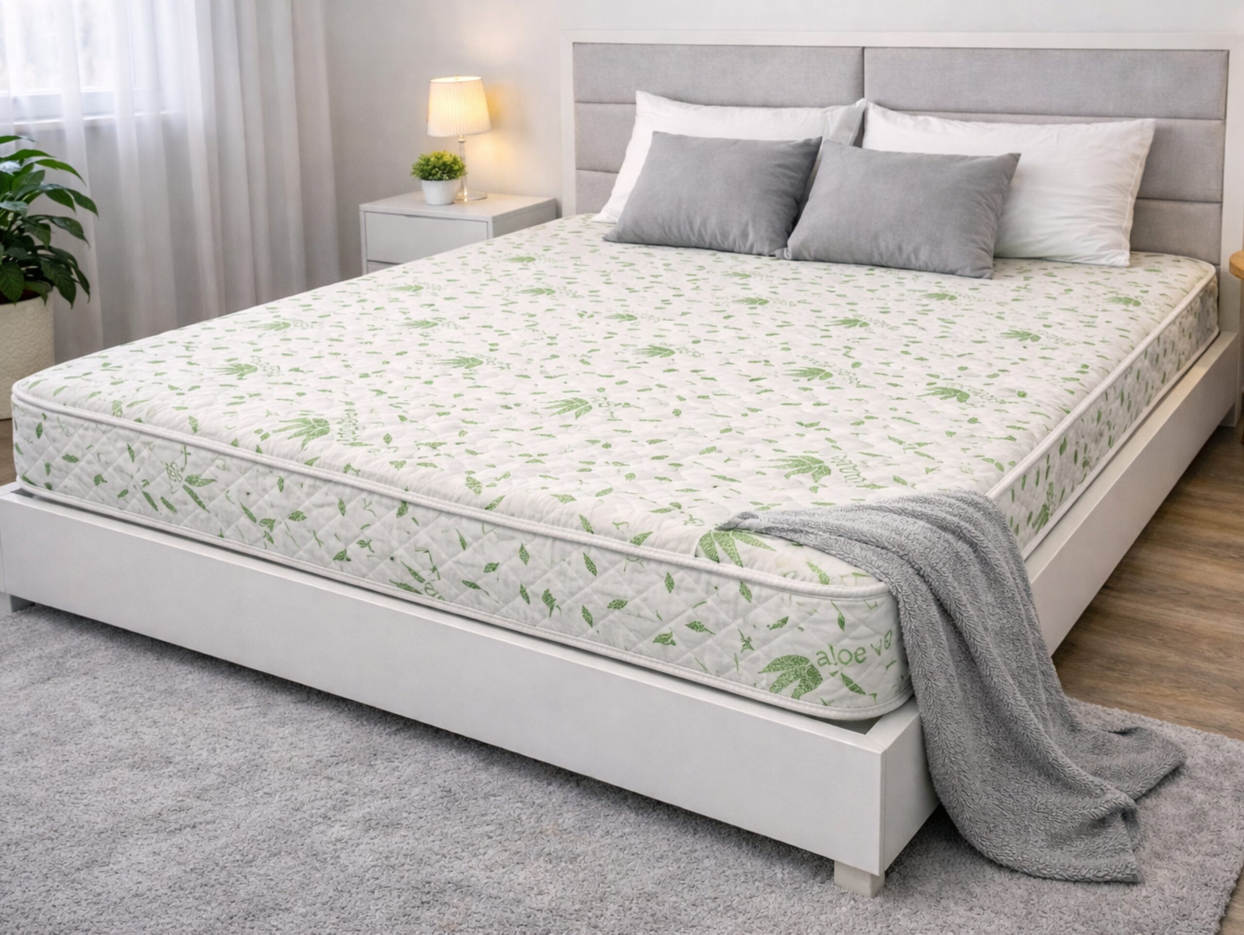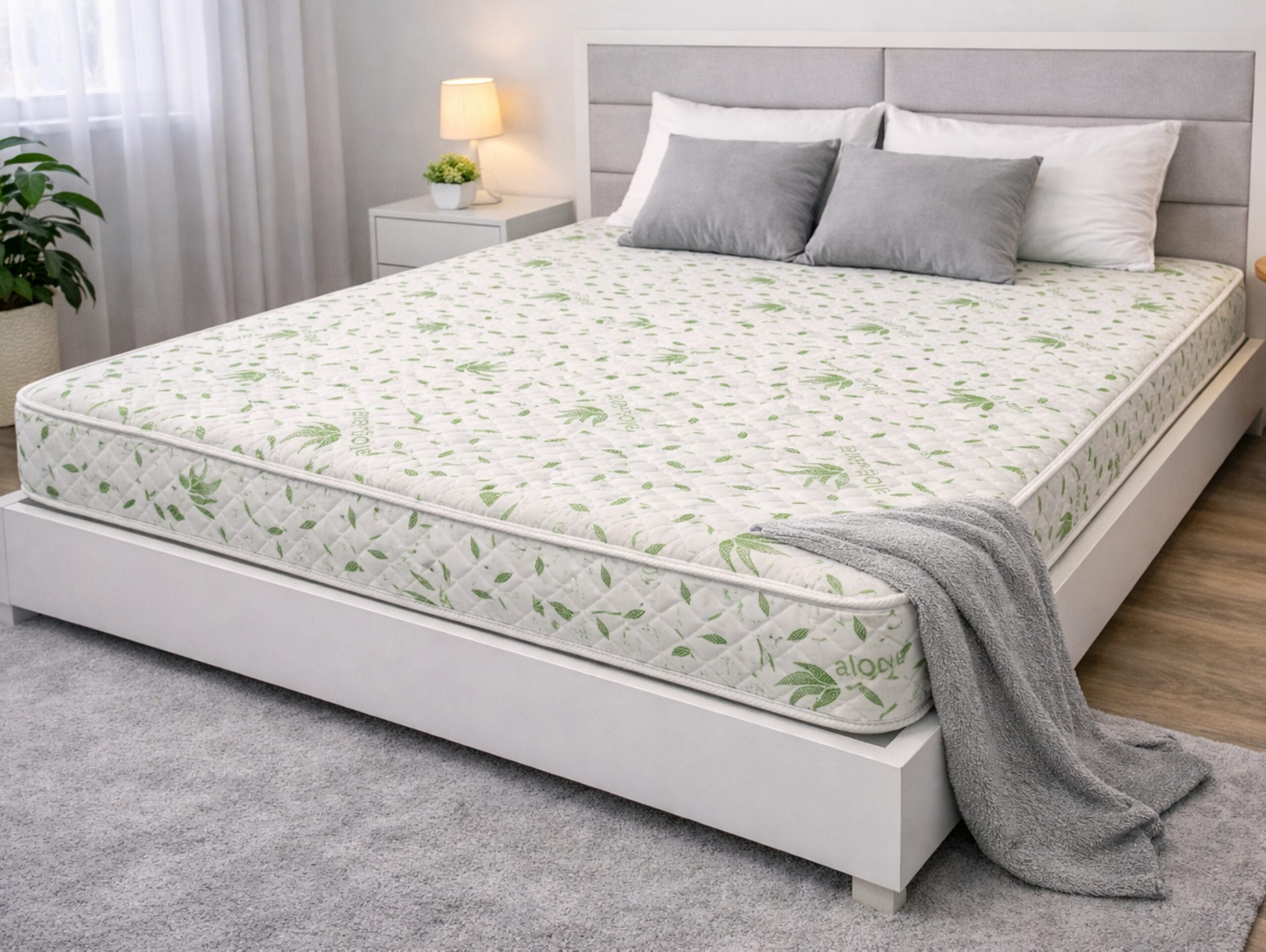 Saltea cu arcuri Somnia Aloe Vera 160×200, inaltime 20 cm, ortopedica, husa matlasata, doua fete, duritate medie