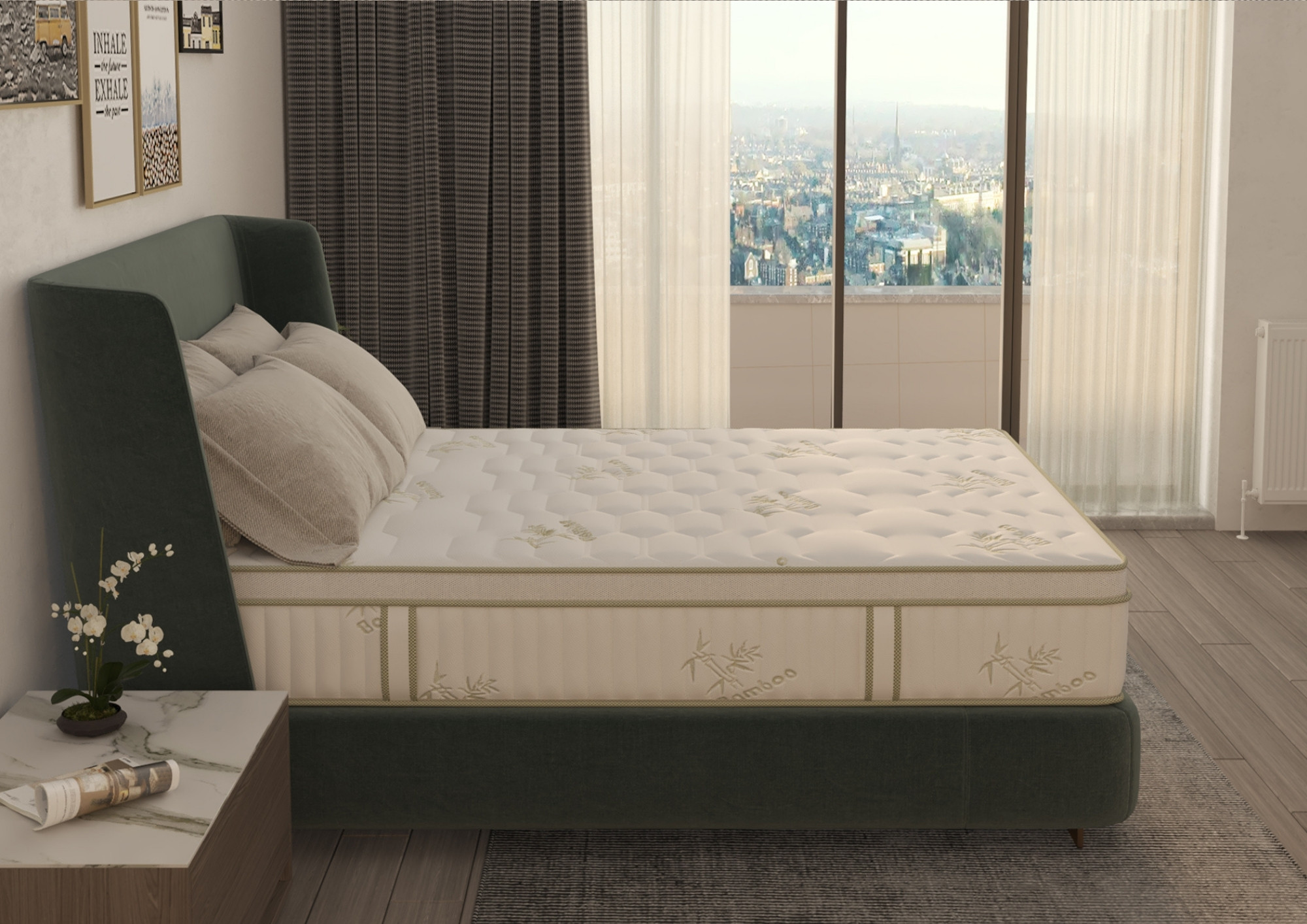 Saltea cu memorie si arcuri Bambus Super Confort Pocket Multilayer 180×200, inaltime 25 cm, husa matlasata, sistem 3D, manere, fermitate medie
