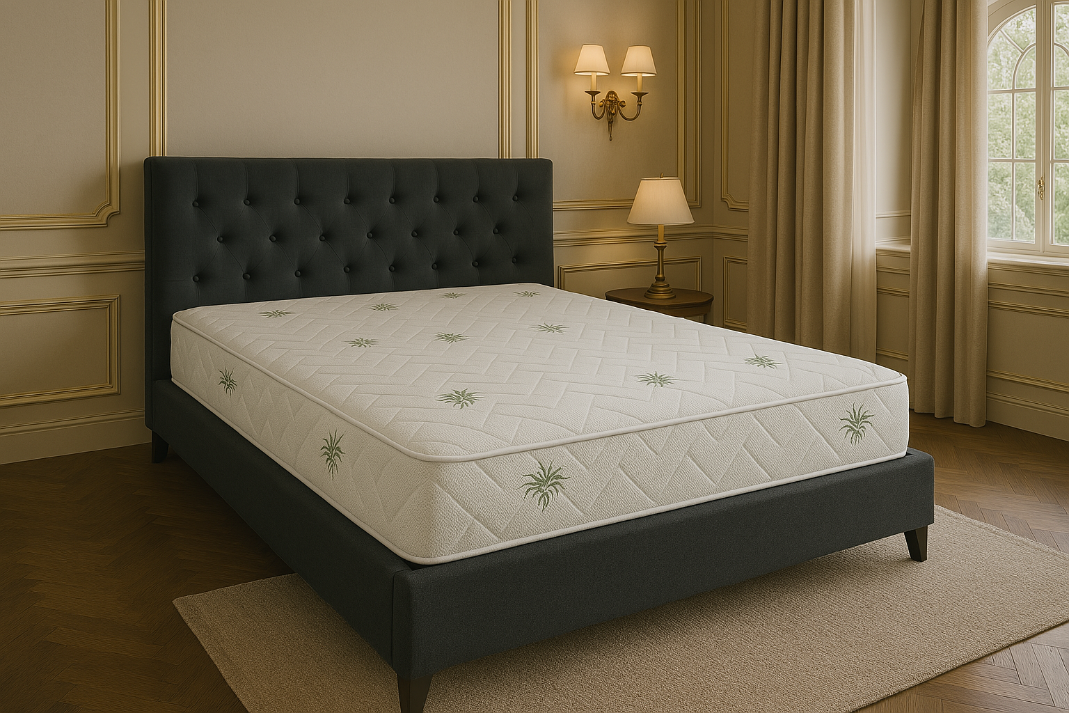 Husa saltelei este realizată din tricot Aloe Vera 260g, un material moale și plăcut la atingere, cu proprietăți benefice pentru piele, contribuind la o senzație de prospețime și relaxare. Aloe Vera este cunoscută pentru efectele sale calmante și antimicrobiene, oferind un mediu de dormit igienic și sănătos.