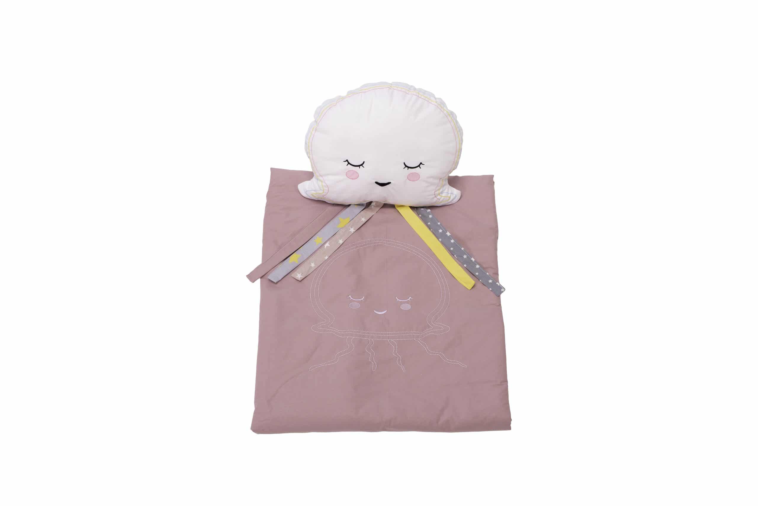 Set paturica 100×110 cm brodata + perna Meduza Roz