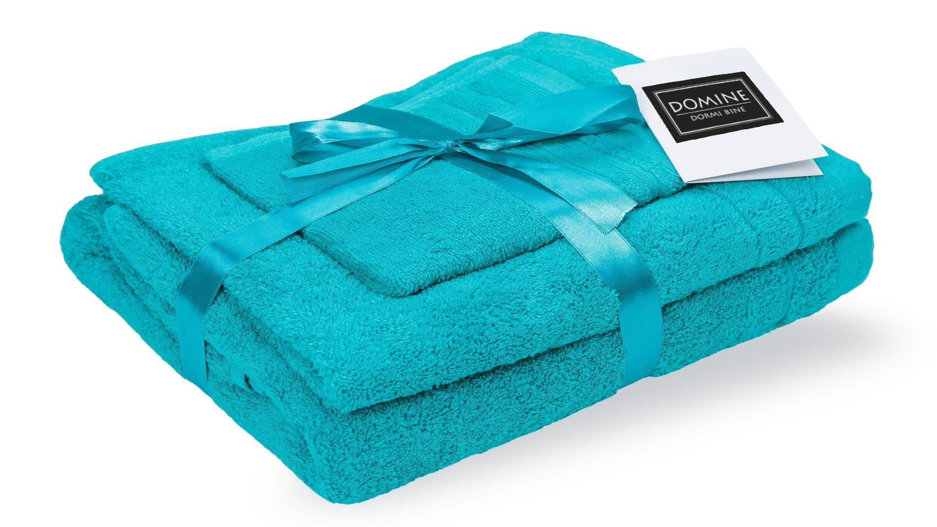 Set prosoape bumbac Domine 600 gsm de fata 50×90 cm + de corp 70×140 + de maini 30×50 cm – turcoaz
