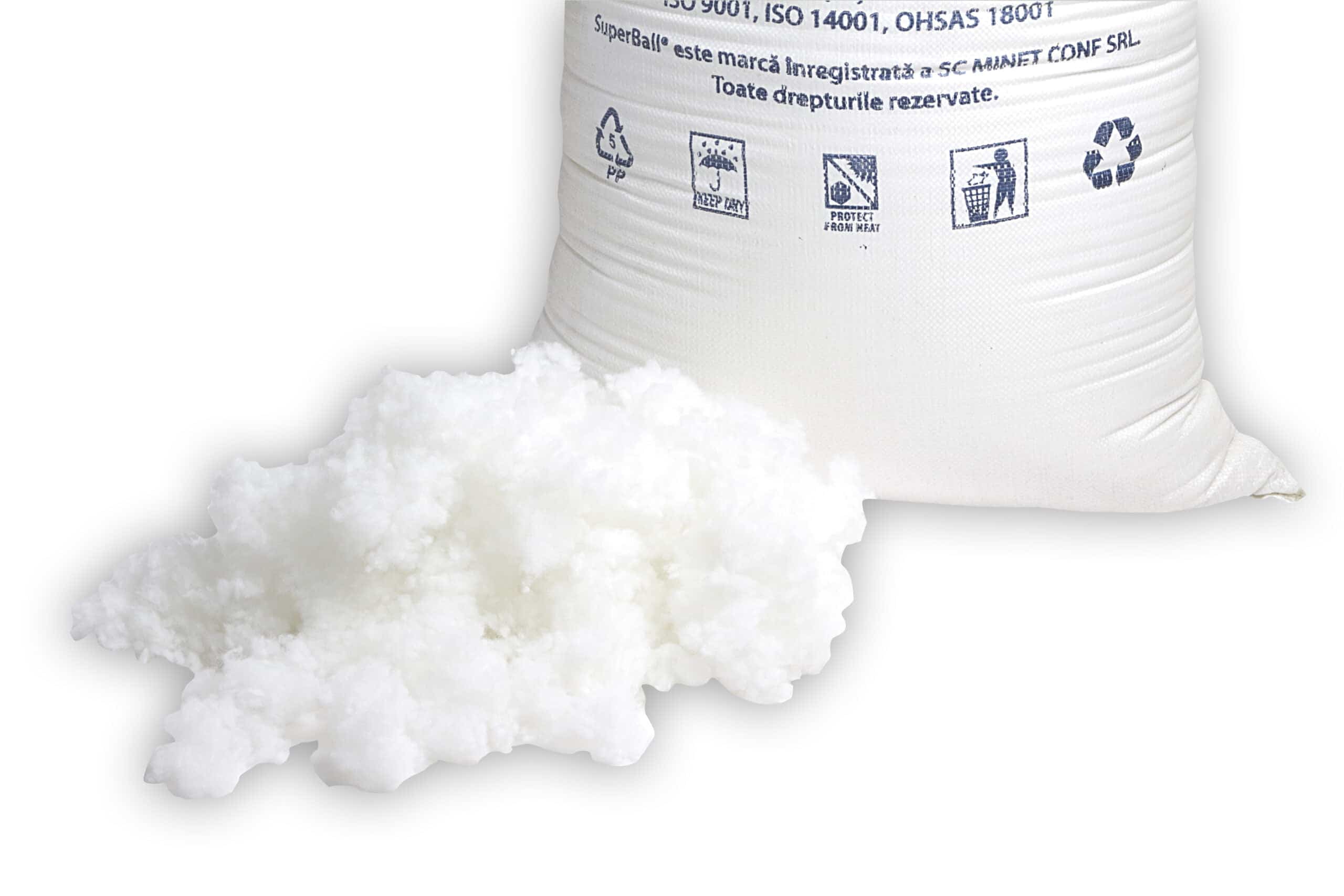 Umplutura perne Superball tip bilute din fibre de poliester, siliconizata si hipoalergenica, la sac cu greutate neta 17kg/sac